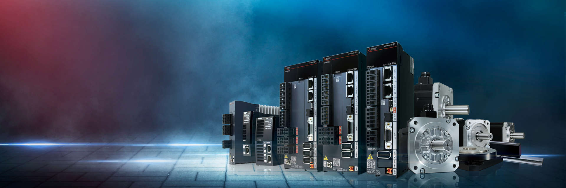 The MR-J5 series servo drives are designed with space-saving in mind. In control cabinets, the reduction in size has been achieved through: